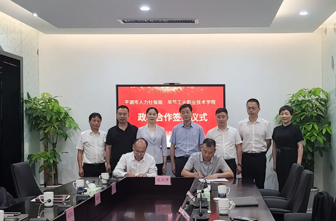▲院長邱國援代表學(xué)院與平湖市人社局簽訂校政合作協(xié)議