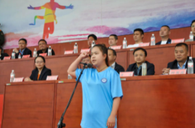 緊接著,運(yùn)動(dòng)員代表與裁判代表上臺(tái)宣誓,表達(dá)了他們對(duì)體育精神的嚴(yán)肅態(tài)度,并表示將在接下來(lái)的比賽中遵守比賽規(guī)則,力求賽出水平、賽出風(fēng)格、賽出成績(jī)。
