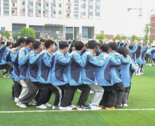 挑戰(zhàn)No.1以班級(jí)為單位把同學(xué)們分為多個(gè)小組,圍繞成圈,通過(guò)不斷優(yōu)化分工,在150秒內(nèi)一共完成3個(gè)挑戰(zhàn)項(xiàng)目。挑戰(zhàn)第一輪,成員跟隨老師的口號(hào)做出相應(yīng)動(dòng)作并念出口號(hào),最后完成疊羅漢的動(dòng)作;挑戰(zhàn)第二輪,在第一輪的基礎(chǔ)上完成疊羅漢向前走八步的動(dòng)作;挑戰(zhàn)第三輪,從每個(gè)組當(dāng)中挑出最強(qiáng)壯的成員,在每個(gè)組準(zhǔn)備完成后向每個(gè)組進(jìn)行撞擊,最終沒(méi)被撞散的組獲勝。