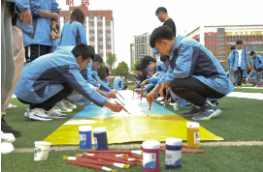 挑戰(zhàn)以班級(jí)為單位分為多個(gè)小組,將一幅完整的大型圖像根據(jù)小組數(shù)量拆分為多個(gè)部分,各小組分別抽取需要作畫部分進(jìn)行溝通創(chuàng)作,最后將小組作品按順序組合在一起,形成最終成品。
