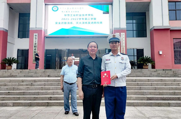最后,學(xué)院黨委委員、副院長黃河為金海湖消防大隊(duì)黃河參謀頒發(fā)了消防輔導(dǎo)員聘書。 此次活動的成功舉行,不僅讓學(xué)院師生更加了解防災(zāi)減災(zāi)安全知識,安全是一切工作的前提,掌握消防安全知識是全體師生義不容辭的責(zé)任。畢節(jié)工業(yè)職業(yè)技術(shù)學(xué)院一直高度重視安全工作,本次消防應(yīng)急疏散演練使抽象的安全演練變成具體的實(shí)戰(zhàn)演習(xí),強(qiáng)化了師生的安全意識,提升了學(xué)生防火自救的能力,使全院師生進(jìn)一步了解了災(zāi)害發(fā)生時的應(yīng)對措施,也切實(shí)加強(qiáng)了學(xué)院的安全教育工作,為創(chuàng)建平安和諧校園提供了堅(jiān)實(shí)保障。