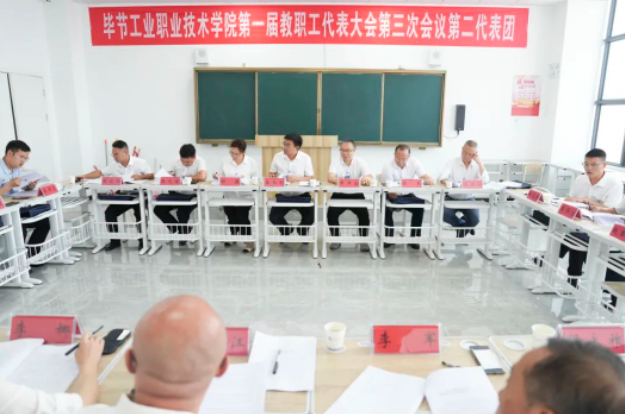 大會還聽取了《畢節(jié)工業(yè)職業(yè)技術(shù)學(xué)院2022年財務(wù)預(yù)算執(zhí)行情況和2023年財務(wù)預(yù)算情況報告》《畢節(jié)工業(yè)職業(yè)技術(shù)學(xué)院工會工作報告》《畢節(jié)工業(yè)職業(yè)技術(shù)學(xué)院第一屆第二次教職工代表大會提案落實情況及第一屆第三次教職工代表大會提案征情況報告》,審議了《畢節(jié)工業(yè)職業(yè)技術(shù)學(xué)院專業(yè)技術(shù)職務(wù)評聘管理暫行辦法》《畢節(jié)工業(yè)職業(yè)技術(shù)學(xué)院年度部門綜合考核實施方案》。期間,三個代表團(tuán)與會代表紛紛以高度的責(zé)任感和飽滿的主人翁精神,緊緊圍繞中心工作,對大會相關(guān)《報告》《辦法》《方案》及相關(guān)《決議(草案)》進(jìn)行認(rèn)真討論和審議,提出修改意見和建議,積極為學(xué)院發(fā)展建言獻(xiàn)策。