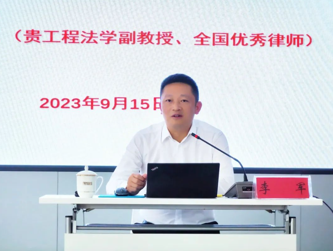9月15日,學(xué)院邀請貴州工程應(yīng)用技術(shù)學(xué)院法學(xué)副教授,貴州本芳律師事務(wù)所副主任律師李軍在拓海學(xué)院二樓會(huì)議室開展“依法治校”能力提升培訓(xùn),培訓(xùn)由學(xué)院黨委委員、宣傳統(tǒng)戰(zhàn)部部長余斌主持。