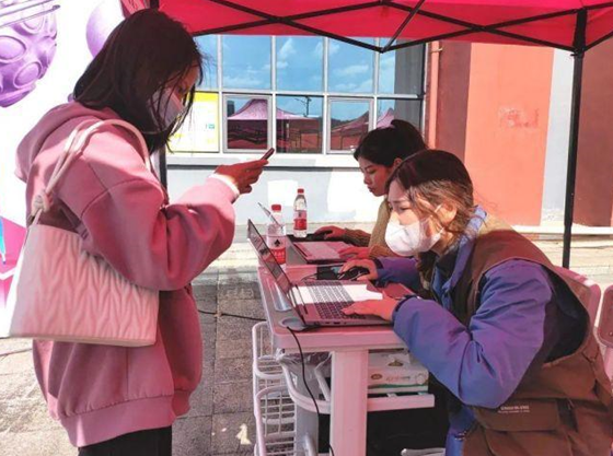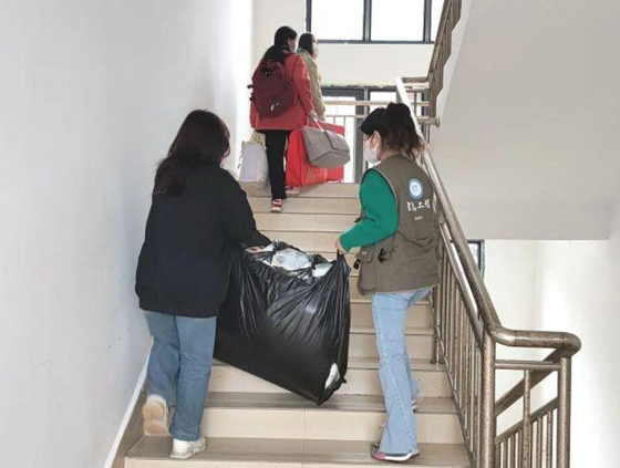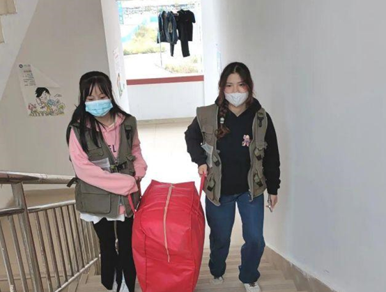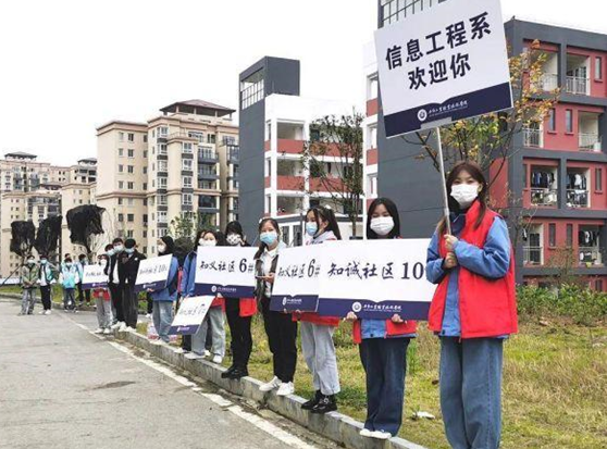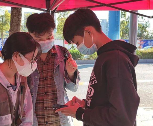 數(shù)名志愿者堅(jiān)守在校園各個點(diǎn)位